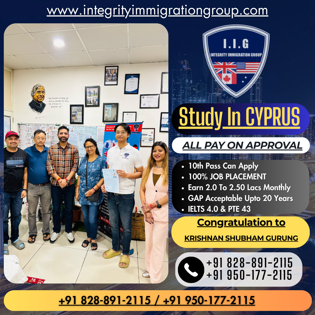 I.I.G Immigration a Study Abroad Consultants In - Haryana - Punjab → Cyprus – Europe – Schengen Study + Shubham Gurung – Work Visa – Integrity Immigration Group – Rajveer Verma
